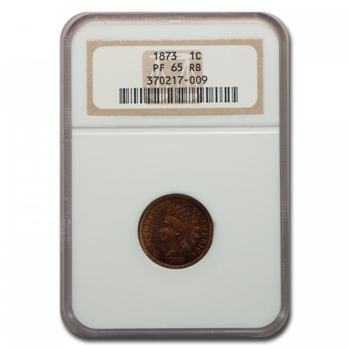 This 1873 Indian Head Cent (Closed 3) has been certified as PF-65 (Red/Brown) by NGC, one of the top two coin grading services. This coin has a population of only 35 coins!