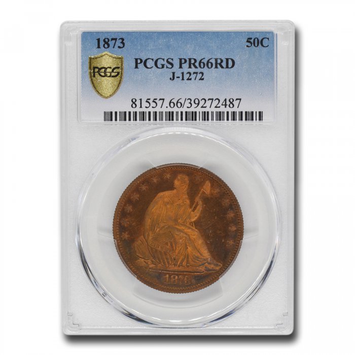 This 1873 Liberty Seated Half Dollar Pattern (J-1272) has been certified as PR-66 (Red) by PCGS, one of the top two coin grading services. This coin has a population of only 1 coin!