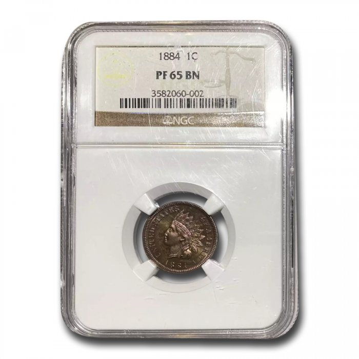 This 1884 Indian Head Cent has been certified as PF-65 (Brown) by NGC, one of the top two coin grading services. This coin has a population of only 55 coins!