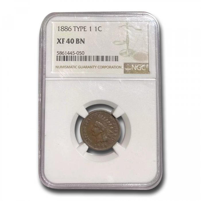 This 1886 Indian Head Cent has been certified as XF-40 (Brown) by NGC, one of the top two coin grading services. This coin has a population of only 28 coins!