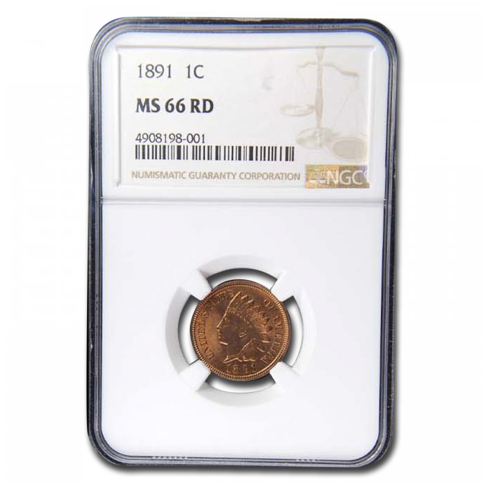 This 1891 Indian Head Cent has been certified as MS-66 (Red) by NGC, one of the top two coin grading services. This coin has a population of only {$Population} coins!