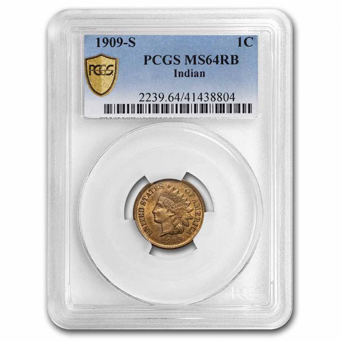 This 1909-S Indian Head Cent has been certified as MS-64 (Red/Brown) by PCGS, one of the top two coin grading services. This highly collectible coin is a great addition to any numismatic collection.