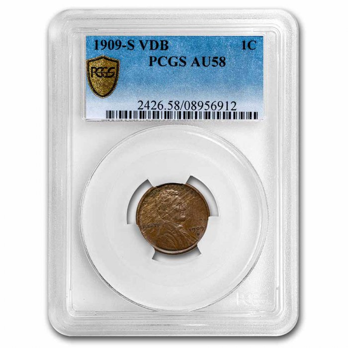 This 1909-S VDB Lincoln Cent has been certified as AU-58 (Brown) by PCGS, one of the top two coin grading services. This highly collectible coin is a great addition to any numismatic collection!