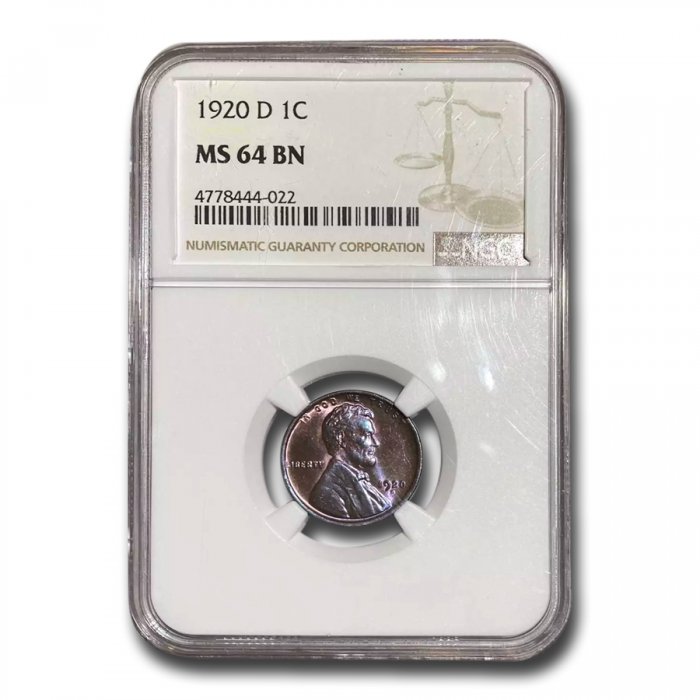 This 1920-D Lincoln Cent has been certified as MS-64 (Brown) by NGC, one of the top two coin grading services. This coin has a population of only 46 coins!