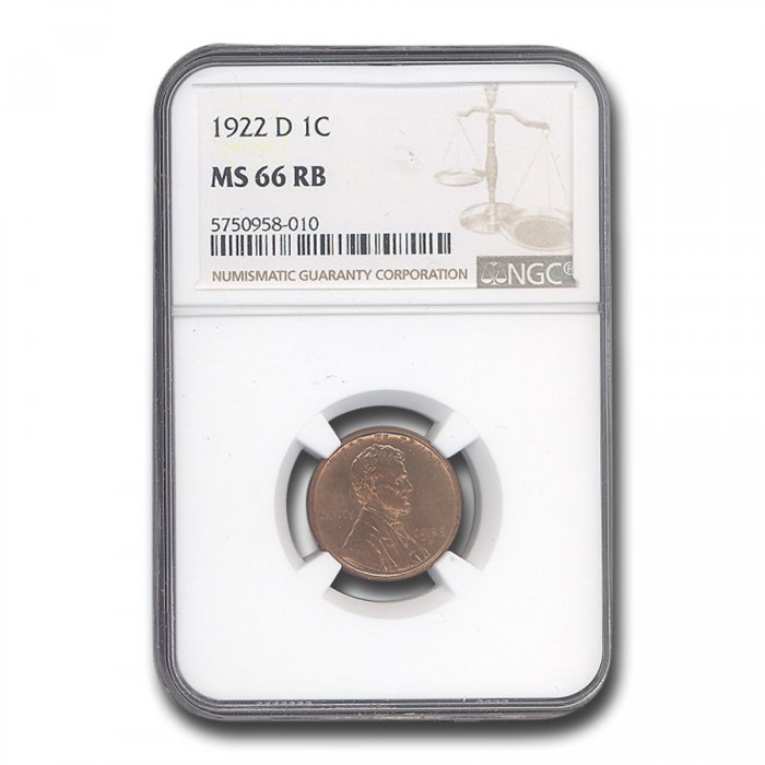 This 1922-D Lincoln Cent has been certified as MS-66 (Red/Brown) by NGC, one of the top two coin grading services. This coin has a population of only {$Population} coins!