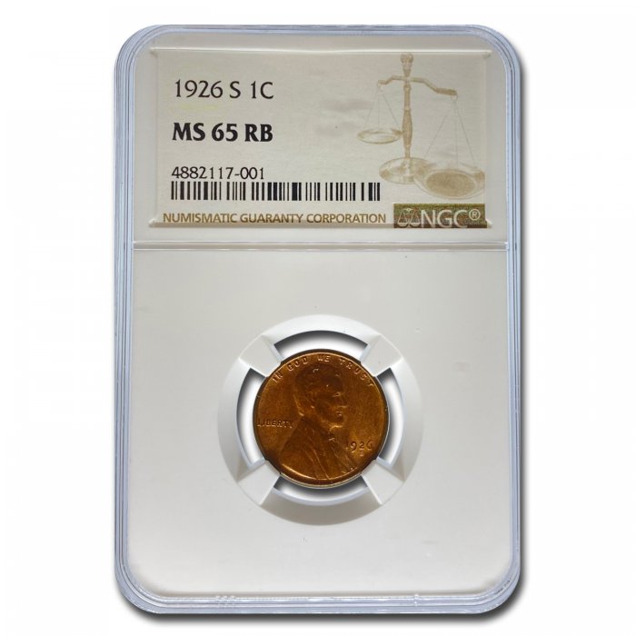 This 1926-S Lincoln Cent has been certified as MS-65 (Red/Brown) by NGC, one of the top two coin grading services. This coin has a population of only 30 coins!