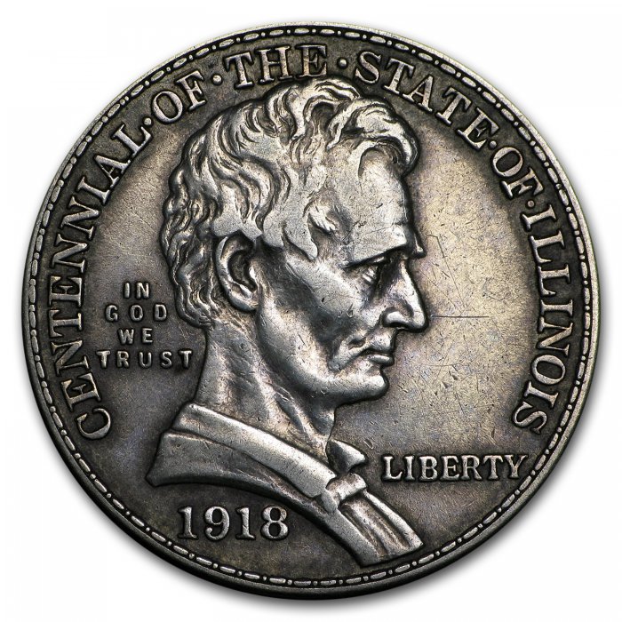 The 1918 Lincoln Commemorative Half Dollar was struck to celebrate the centennial of the great state of Illinois into the Union of the United States.