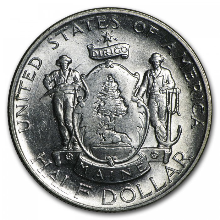 Congress authorized the Maine Centennial half dollar on May 10, 1920, to be sold at the centennial celebration at Portland. They were received too late for this event and were sold by the state treasurer for many years.