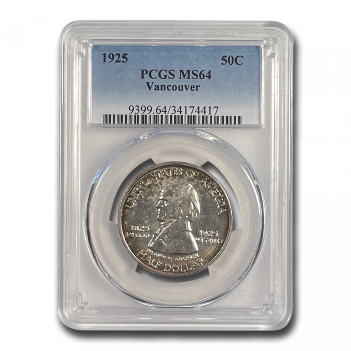 This 1925 Vancouver Half Dollar has been certified as MS-64 by PCGS, one of the top two coin grading services. This highly collectible coin is a great addition to any numismatic collection!
