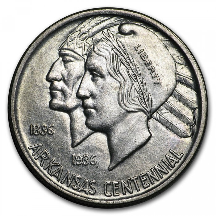 The Arkansas Centennial commemorative half dollars were issued to commemorate the Centennial of Arkansas' admission to the Union.