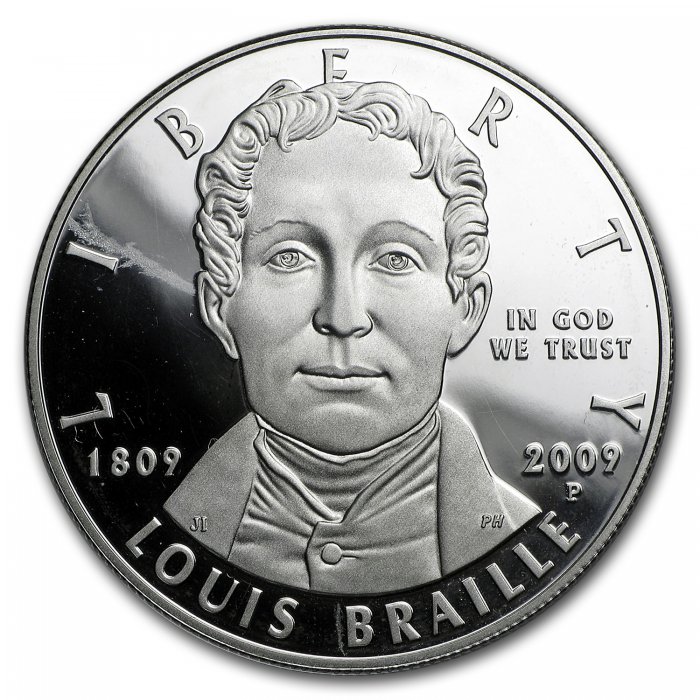 Buy 2009-P Louis Braille $1 Silver Commem Proof (w/Box & COA)