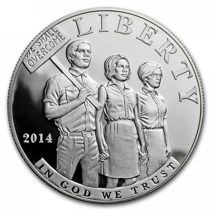 - Obverse: Features three people of different creeds holding hands at a civil rights march.