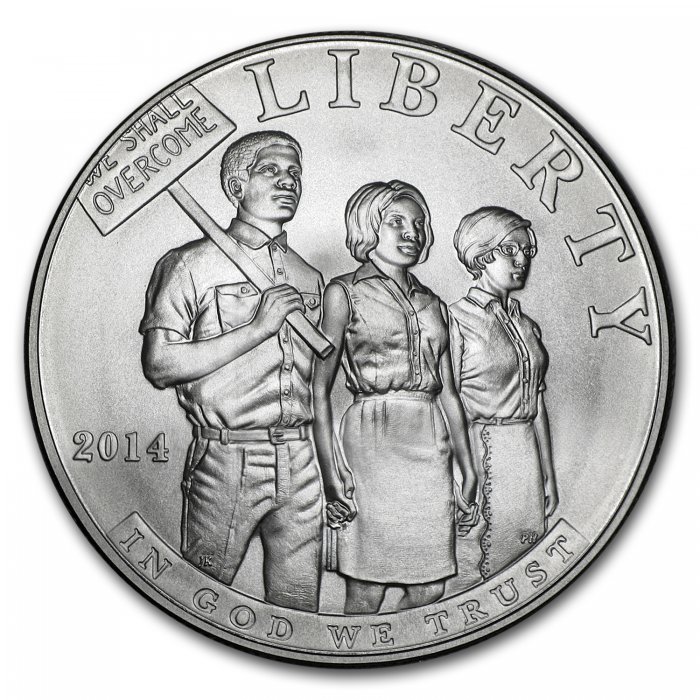 - Obverse: Features three people of different creeds holding hands at a civil rights march.