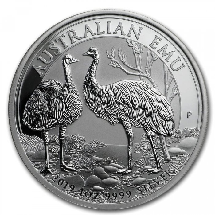 - Reverse: Depicts two Australian Emus on a landscape of foliage, trees, and grass. The design also includes the description "Australian Emu", The Perth Mint's "P" mint mark, the year date, weight, and purity.