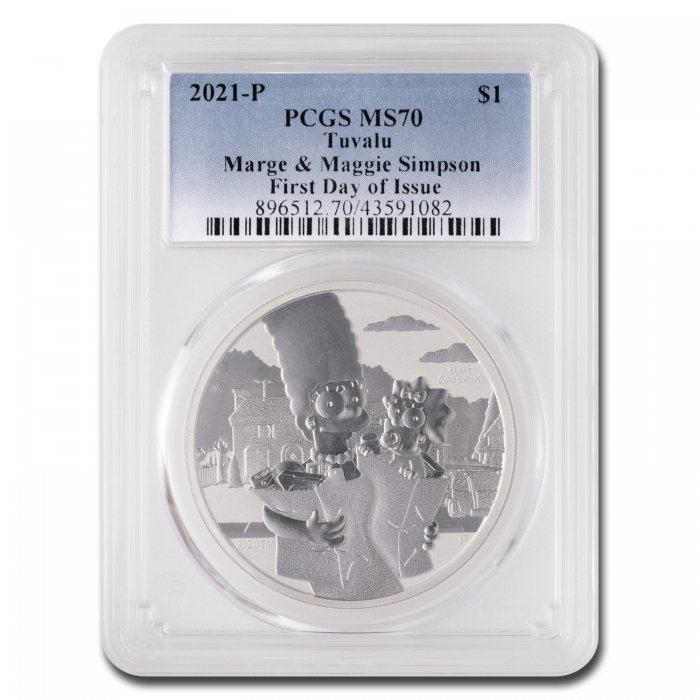 This Silver Perth Mint coin celebrates Marge and Maggie from the Simpson family on a 1 oz coin. Add this 1 oz Silver Simpsons coin to your cart today!