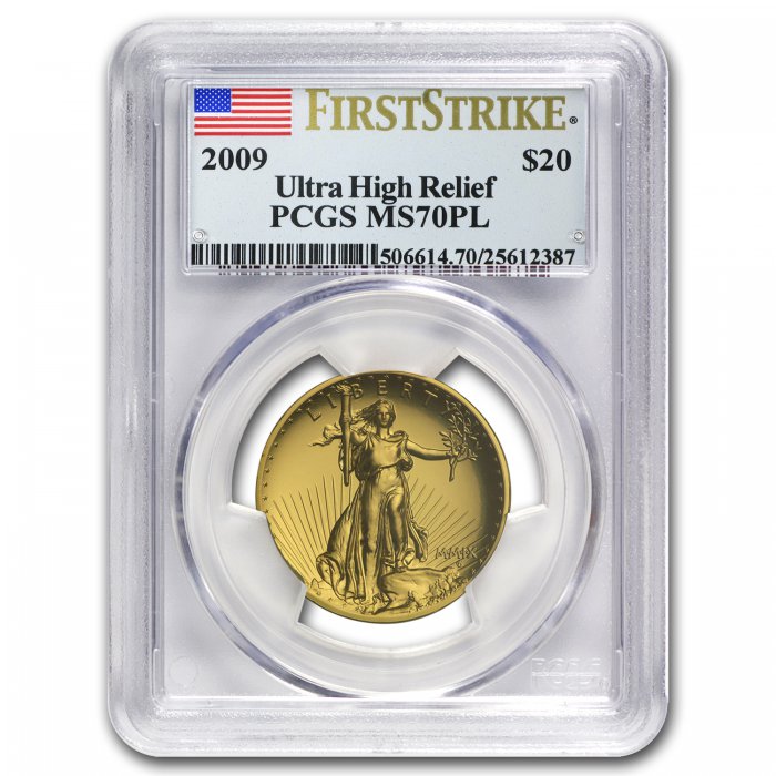 Population of only 151 First Strike coins graded a perfect MS-70 PL! This coin pays homage to Saint-Gaudens' classic design as originally envisioned for the 1907 $20 Gold coin, struck in beautiful Ultra High Relief.
