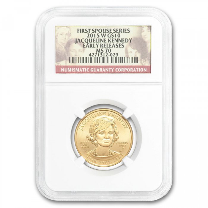 Only $1,219.00 per coin The U.S. Mint's First Spouse series features each of the First Ladies that have graced the White House. This issue, graded a perfect 70 by NGC honors Jacqueline Kennedy, loved by all of America.