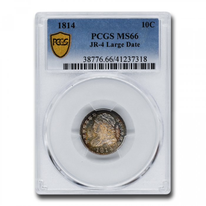 This 1814 Capped Bust Dime (JR-4, Large Date) has been certified as MS-66 by PCGS, one of the top two coin grading services.
