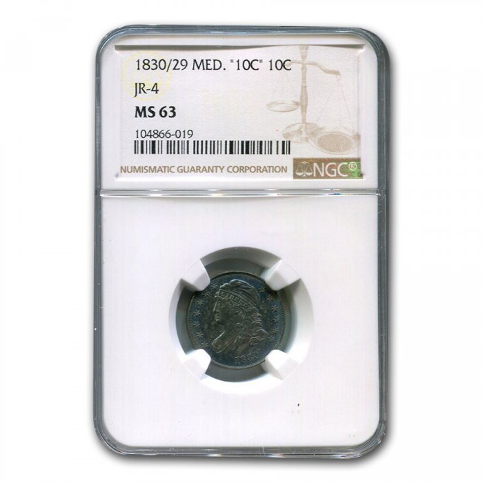 Only $3,469.00 per coin This 1830 Capped Bust Dime (Medium, JR-4) has been certified as MS-63 by NGC, one of the top two coin grading services. This coin has a population of only 3 coins!