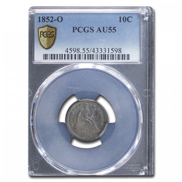 Only $1,139.00 per coin This 1852-O Liberty Seated Dime has been certified as AU-55 by PCGS, one of the top two coin grading services. This coin has a population of only 7 coins!