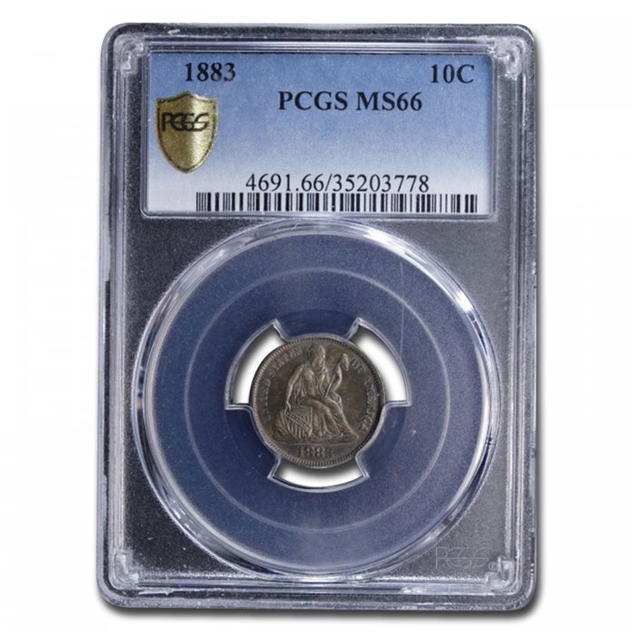 This 1883 Liberty Seated Dime has been certified as MS-66 by PCGS, one of the top two coin grading services. This coin has a population of only 69 coins!