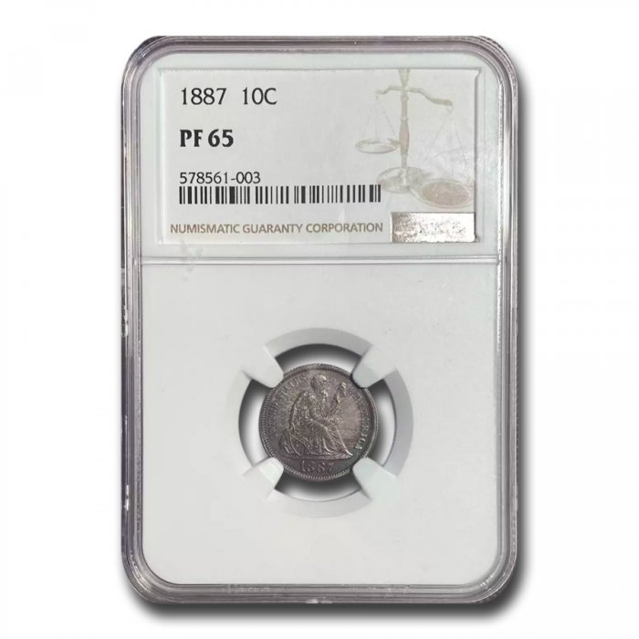Only $999.00 per coin This 1887 Liberty Seated Dime has been certified as PF-65 by NGC, one of the top two coin grading services. This coin has a population of only 39 coins!