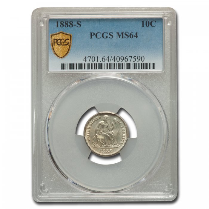 Only $1,439.00 per coin This 1888-S Liberty Seated Dime has been certified as MS-64 by PCGS, one of the top two coin grading services. This coin has a population of only 12 coins!