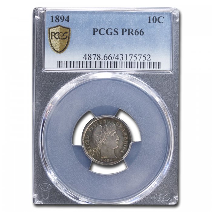 Only $1,339.00 per coin This 1894 Barber Dime has been certified as PR-66 by PCGS, one of the top two coin grading services. This coin has a population of only 42 coins!