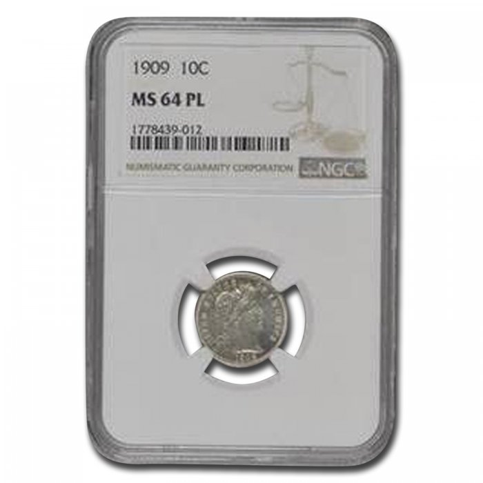 Only $4,169.00 per coin This 1909 Barber Dime has been certified as MS-64 (PL) by NGC, one of the top two coin grading services. This coin has a population of only 1 coin!