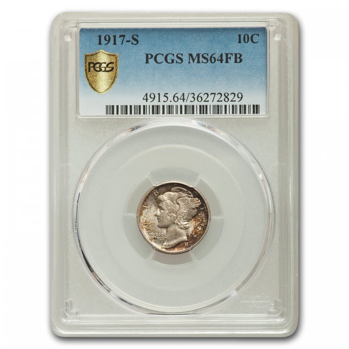 This 1917-S Mercury Dime has been certified as MS-64 (FB) by PCGS, one of the top two coin grading services.