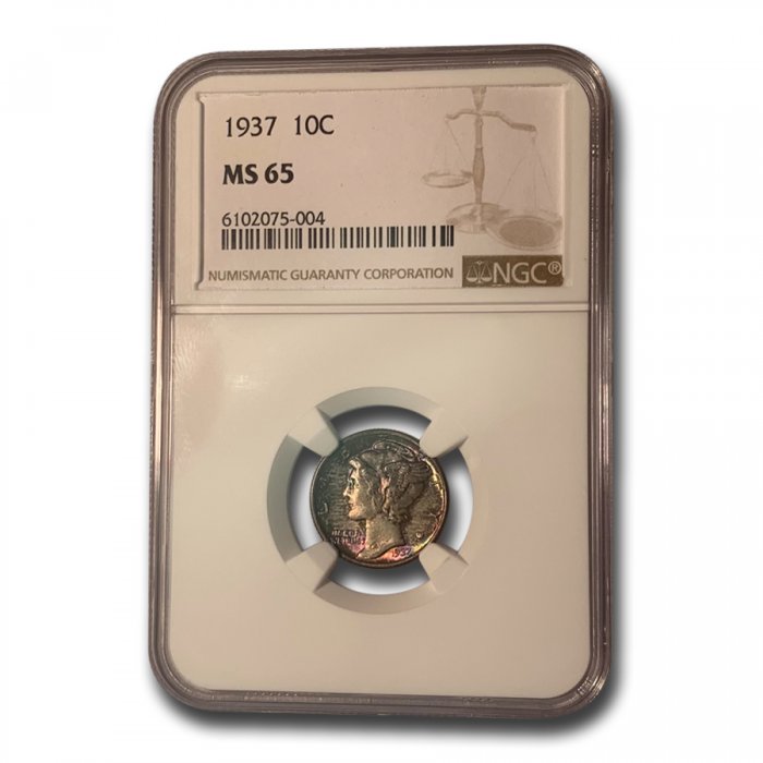 This 1937 Mercury Dime has been certified as MS-65 by NGC, one of the top two coin grading services. This highly collectible coin is a great addition to any numismatic collection!