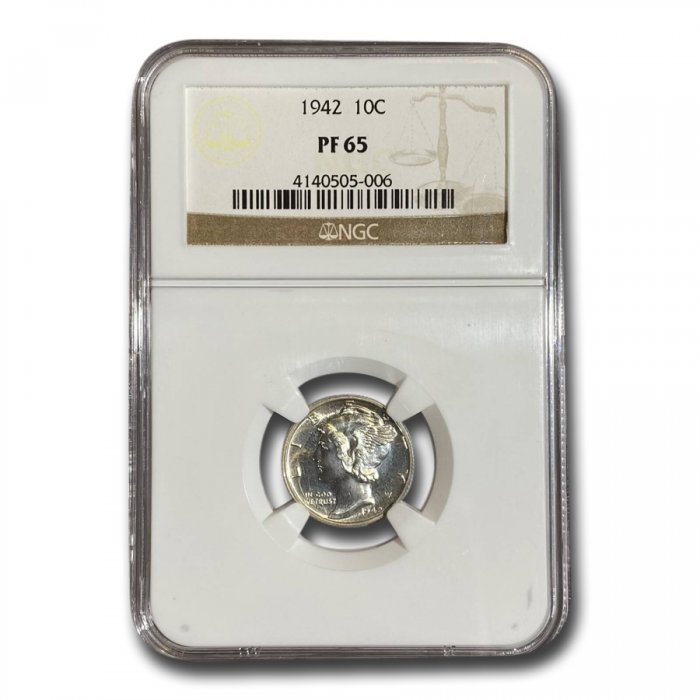 This 1942 Mercury Dime has been certified as PR-65 by NGC, one of the top two coin grading services. This highly collectible coin is a great addition to any numismatic collection!