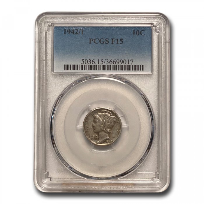 This 1942/1 Mercury Dime has been certified as Fine - 15 by PCGS, one of the top two coin grading services, and would be the perfect addition to your set or collection!