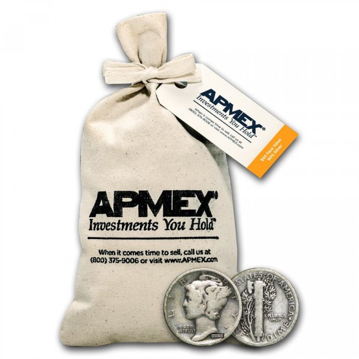- Each $50 bag of 90% Silver Mercury Dimes contains 500 coins.