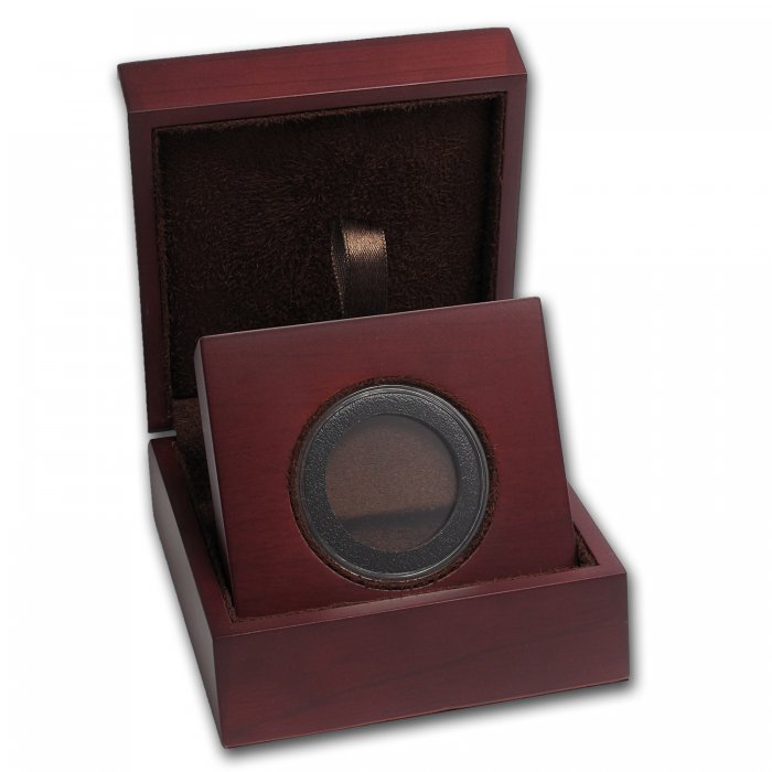 APMEX introduces a new wooden presentation box to store or display your prized coin or to present as a gift! This box comes with a 31 mm Air-Tite Holder with Gasket.