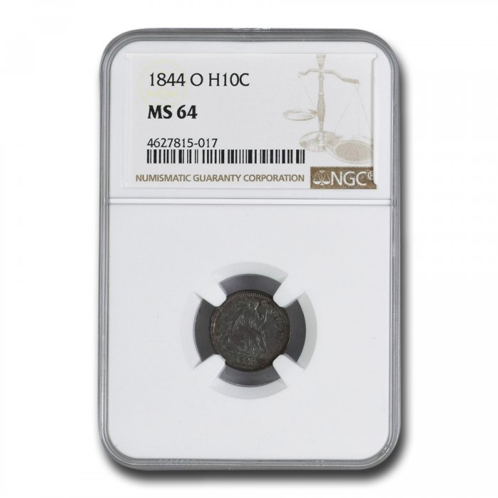 This 1844-O Liberty Seated Half Dime has been certified as MS-64 by NGC, one of the top two coin grading services.