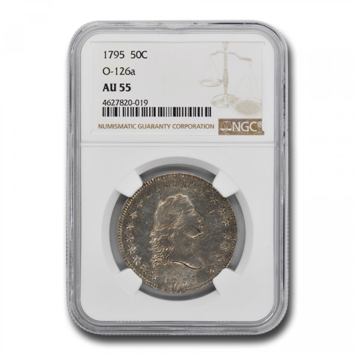This 1795 Flowing Hair Half Dollar (O-126a) has been certified as AU-58 by NGC, one of the top two coin grading services. This coin has a population of only 37 coins! Neat adjustment marks on the obverse.