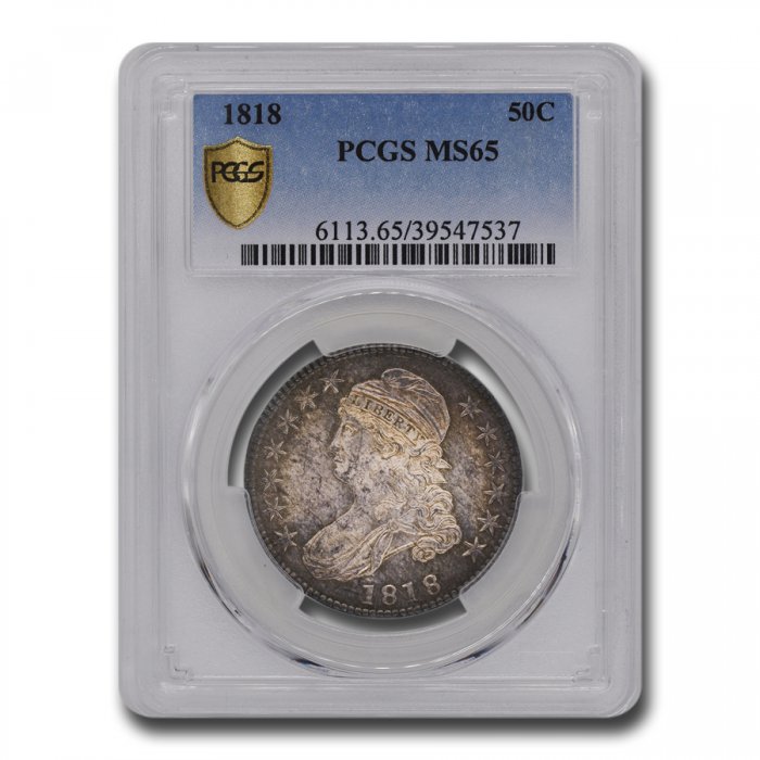 This 1818 Capped Bust Half Dollar has been certified as MS-65 by PCGS, one of the top two coin grading services. This coin has a population of only 6 coins!