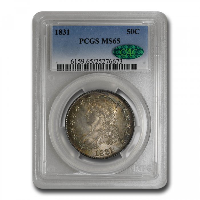 This 1831 Capped Bust Half Dollar has been certified as MS-65 by PCGS, one of the top two coin grading services. This coin has a population of only 67 coins!