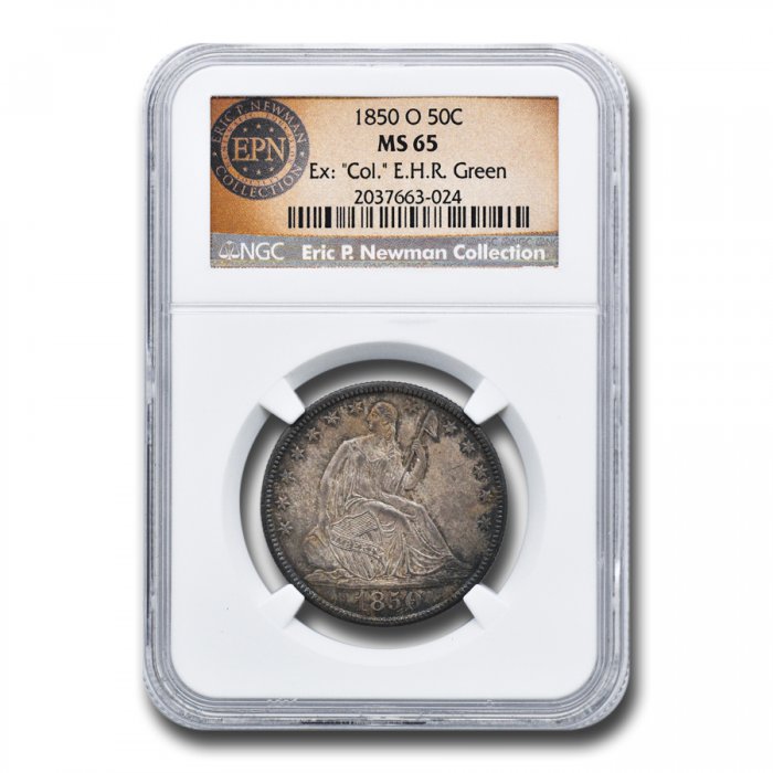 This 1850-O Liberty Seated Half Dollar (EX: Col E.H.R Green) has been certified as MS-65 by NGC, one of the top two coin grading services.