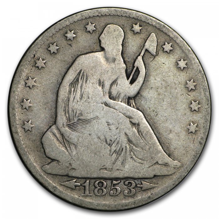 Add this 1853 Liberty Seated Half Dollar to your cart today!