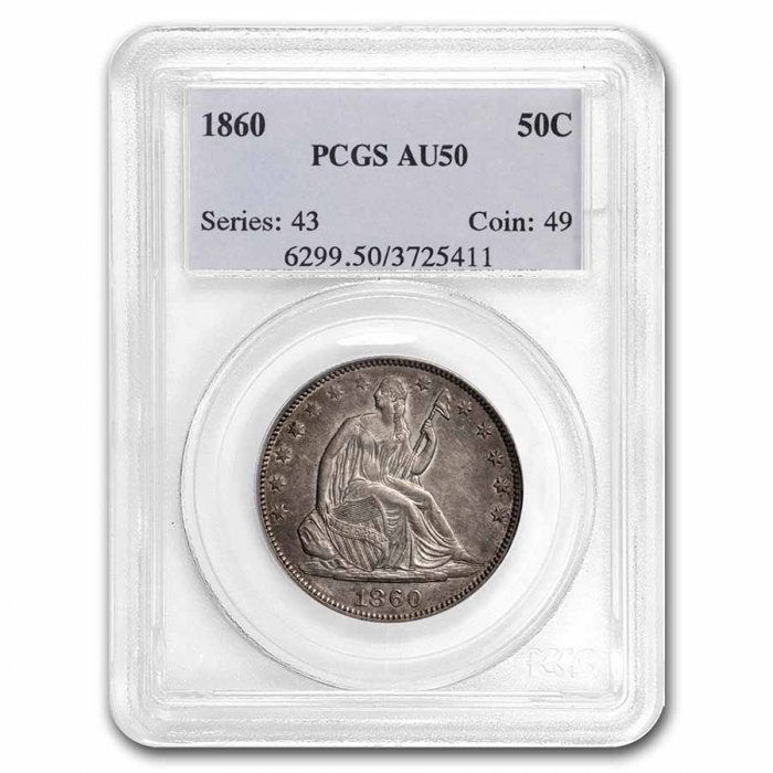 Only $429.99 per coin This 1860 Liberty Seated Half Dollar has been certified as AU-50 by PCGS, one of the top two coin grading services. This coin has a population of only 27 coins!