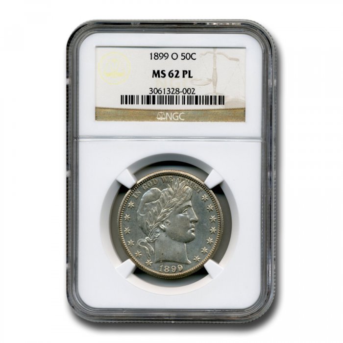 This 1899-O Barber Half Dollar has been certified as MS-62 (PL) by NGC, one of the top two coin grading services. This coin has a population of only 1 coin!