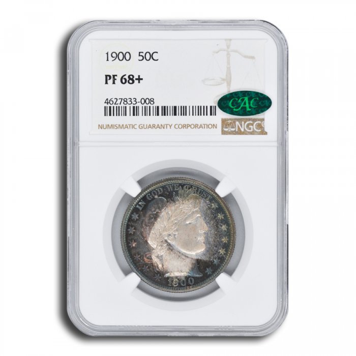 This 1900 Barber Half Dollar has been certified as PF-68+ by NGC, one of the top two coin grading services. This coin has a population of only 1 coin!