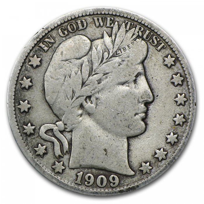 This 90% Silver 1909 San Francisco Barber Half Dollar is in Very Fine condition and features a full Liberty on the head.