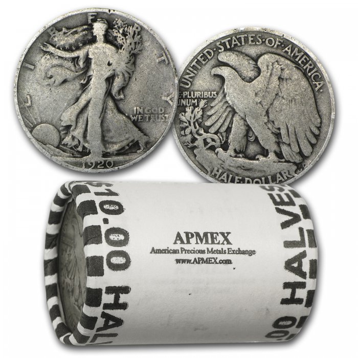 / Buy 1920 Walking Liberty Halves 20-Coin Roll Avg Circ
