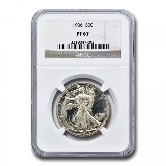 This 1936 Walking Liberty Half Dollar has been certified as Proof-67 by NGC, one of the top two coin grading services, and has a population of only 85 coins.