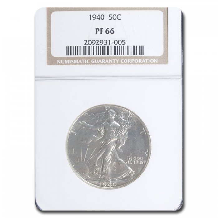 Only $739.00 per coin This 1940 Walking Liberty Half Dollar has been certified as PF-66 by NGC, one of the top two coin grading services. This highly collectible coin is a great addition to any numismatic collection.