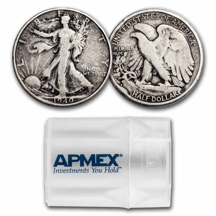 / Buy 1940-S Walking Liberty Halves 20-Coin Roll Avg Circ
