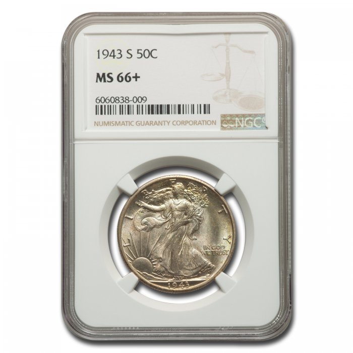Only $739.00 per coin This 1943-S Walking Liberty Half Dollar has been certified as MS-66+ by NGC, one of the top two coin grading services. This coin has a population of only 38 coins!